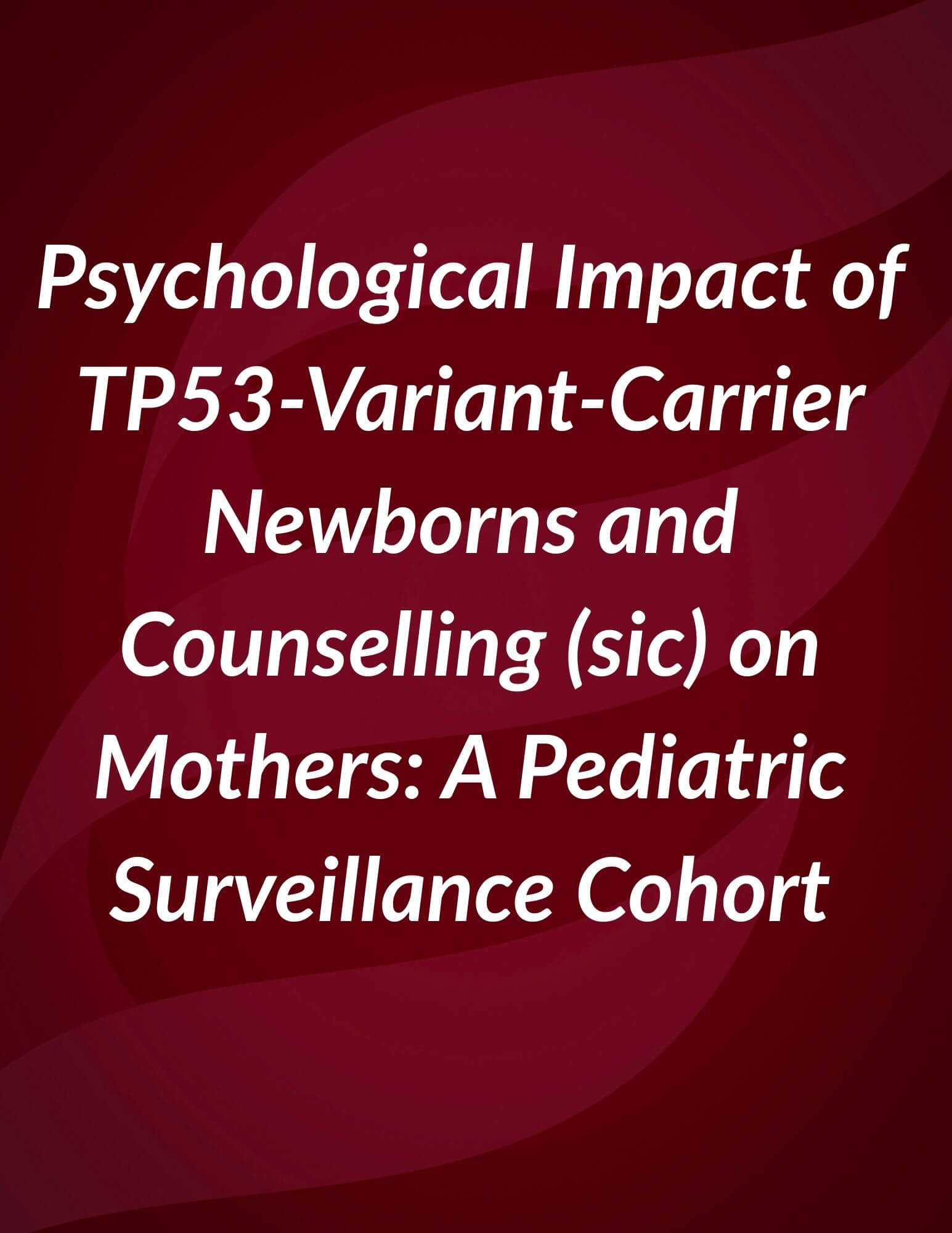 Psychological Impact of TP53-Variant-Carrier Newborns and Counselling on Mothers: A Pediatric Surveillance Cohort